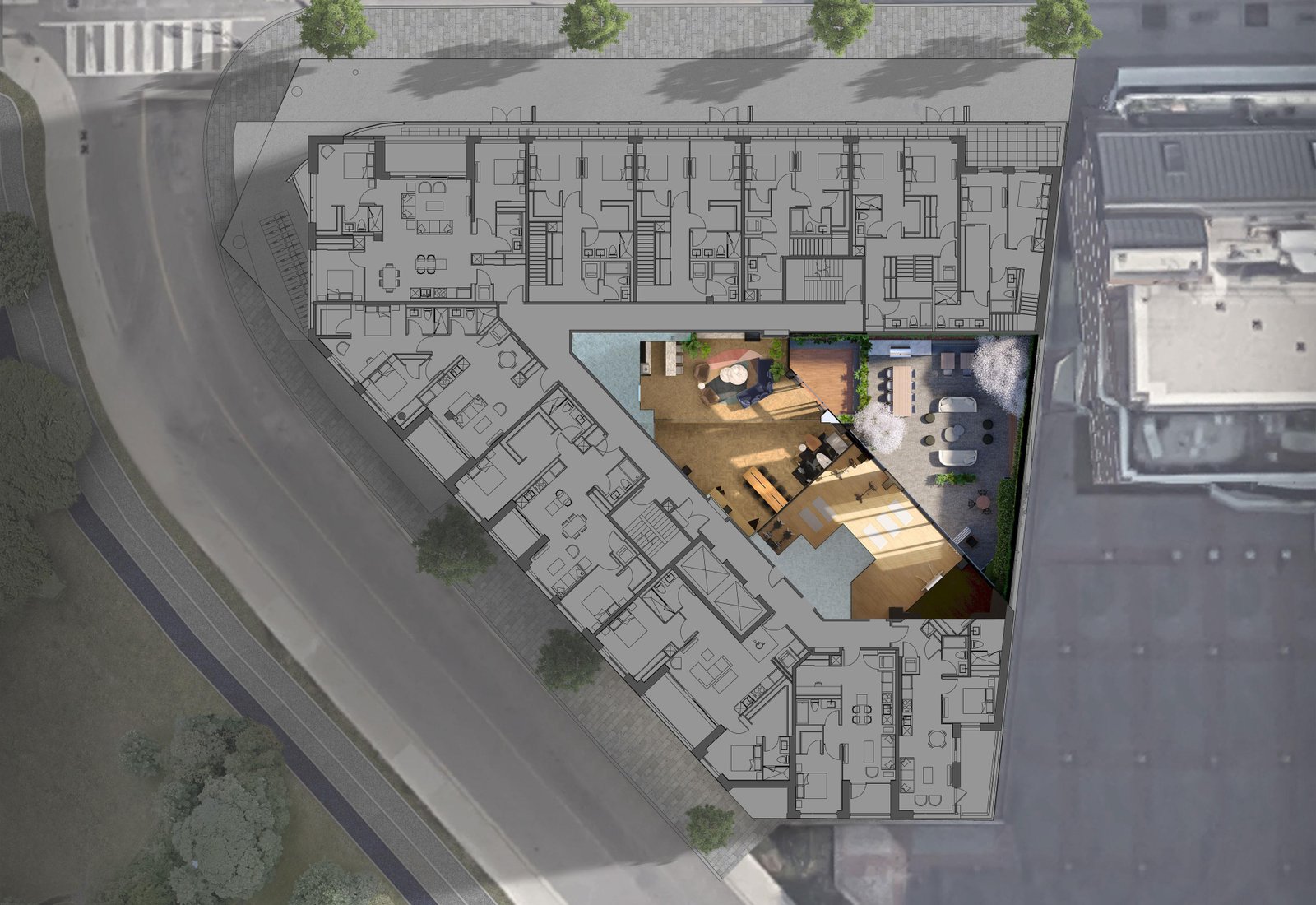 1181 Queen St. W Condos will offer a selection of premium amenities and features designed for modern living. Ground-floor retail space will span 7,500 sq. ft., bringing added convenience to residents. The second-floor amenity space will include 1,800 sq. ft. of indoor space, along with an outdoor terrace. The third-floor amenity area will offer a state-of-the-art fitness centre, an art studio, and an additional 2,500 sq. ft. of resident-only space. The third-floor will also feature a green roof, promoting sustainability and offering a relaxing environment.