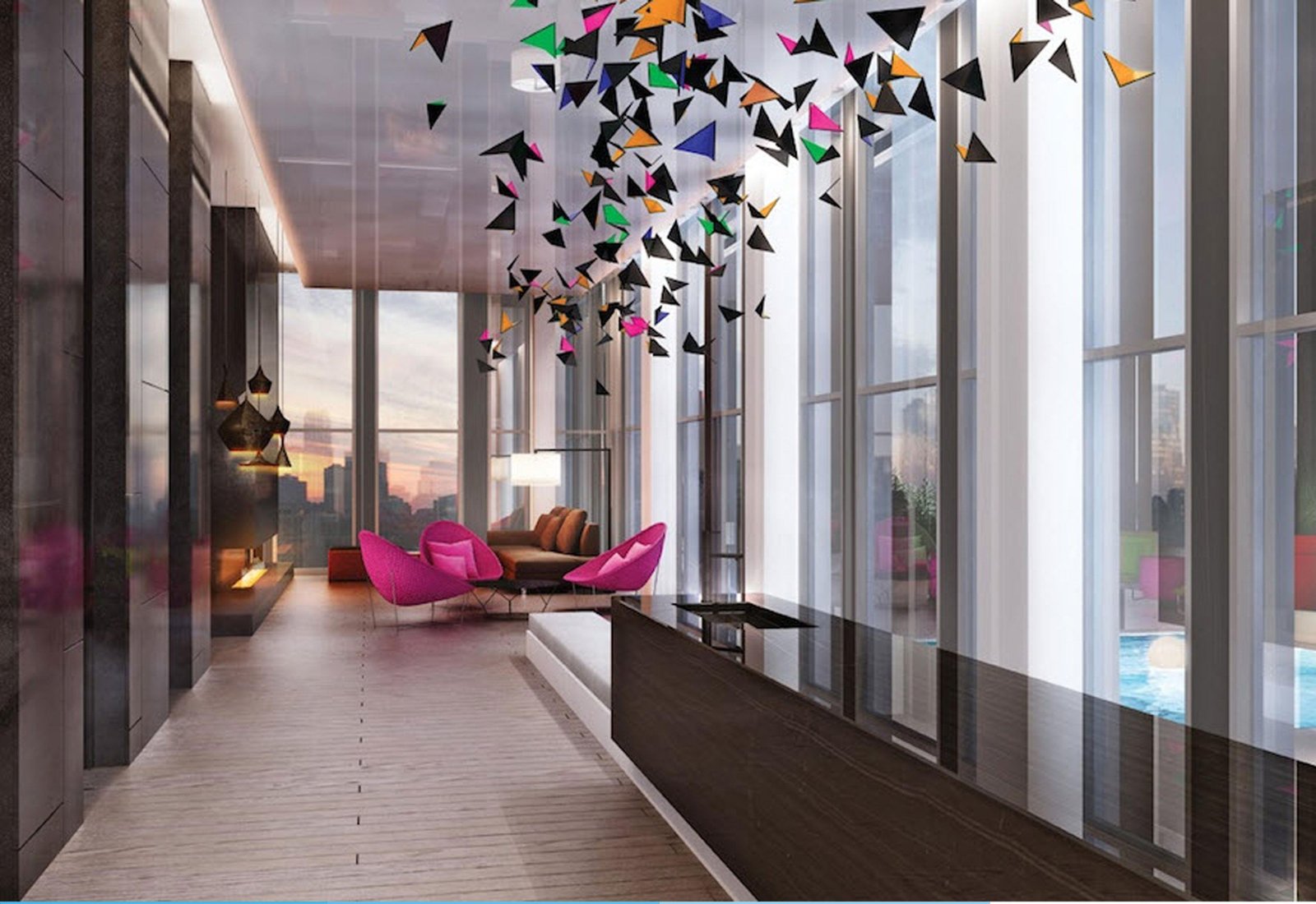Residents will enjoy panoramic views of downtown Toronto from the building’s sky-top lounge. The amenity space offers a stylish dining room and bar for entertaining, as well as an outdoor cabana deck for relaxation. Other amenities include: