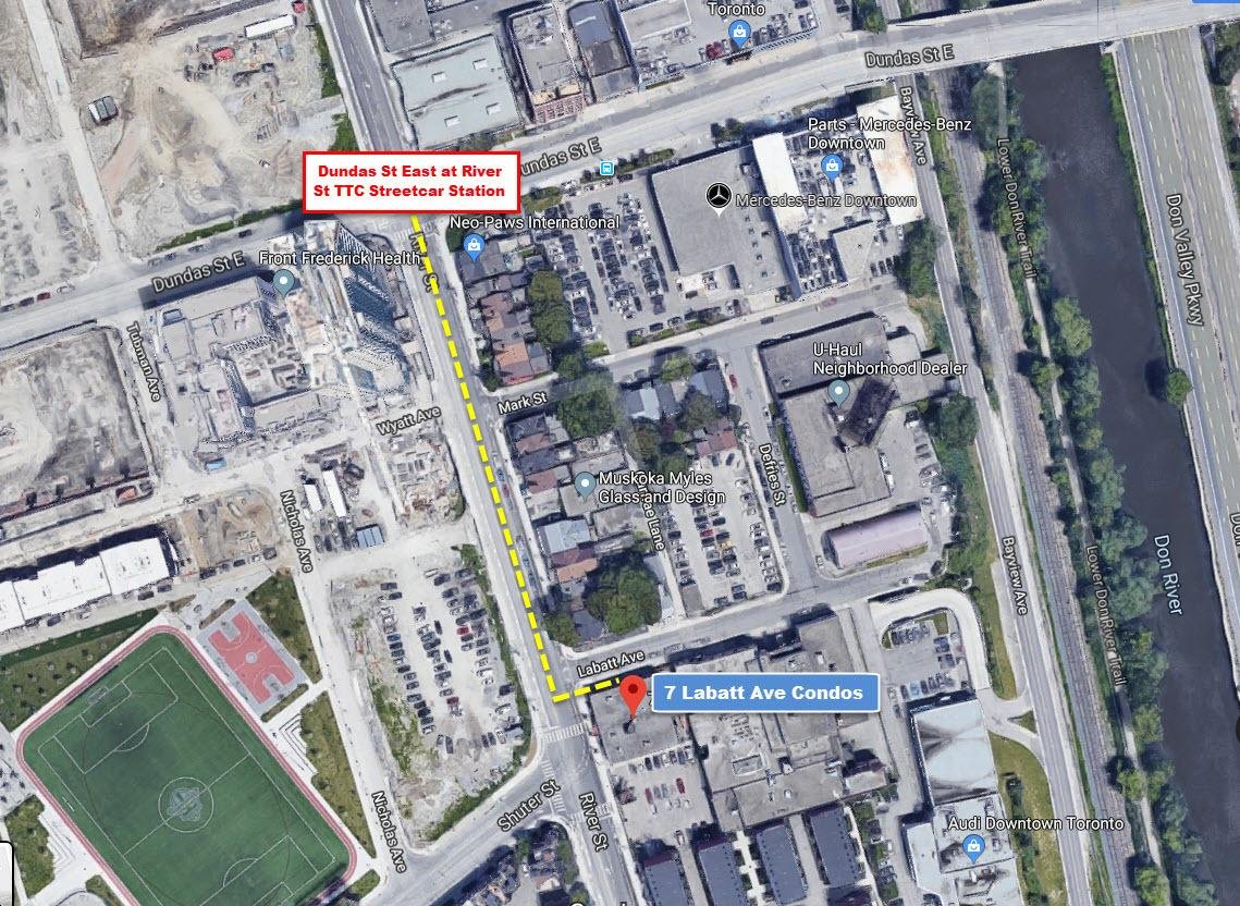 2. Exceptional Walk and Transit Scores! – With an impressive walk score of 90, 7 Labatt Ave Condos offer easy access to local amenities. The area also boasts a perfect transit score of 100, with the Queen Streetcar just a 5-minute walk away. Additionally, the neighborhood features bike lanes, earning a bike score of 75.
