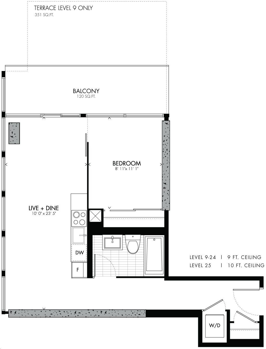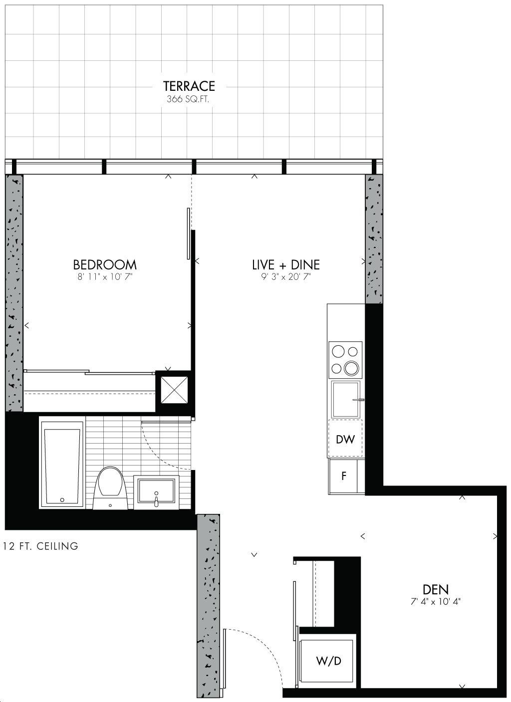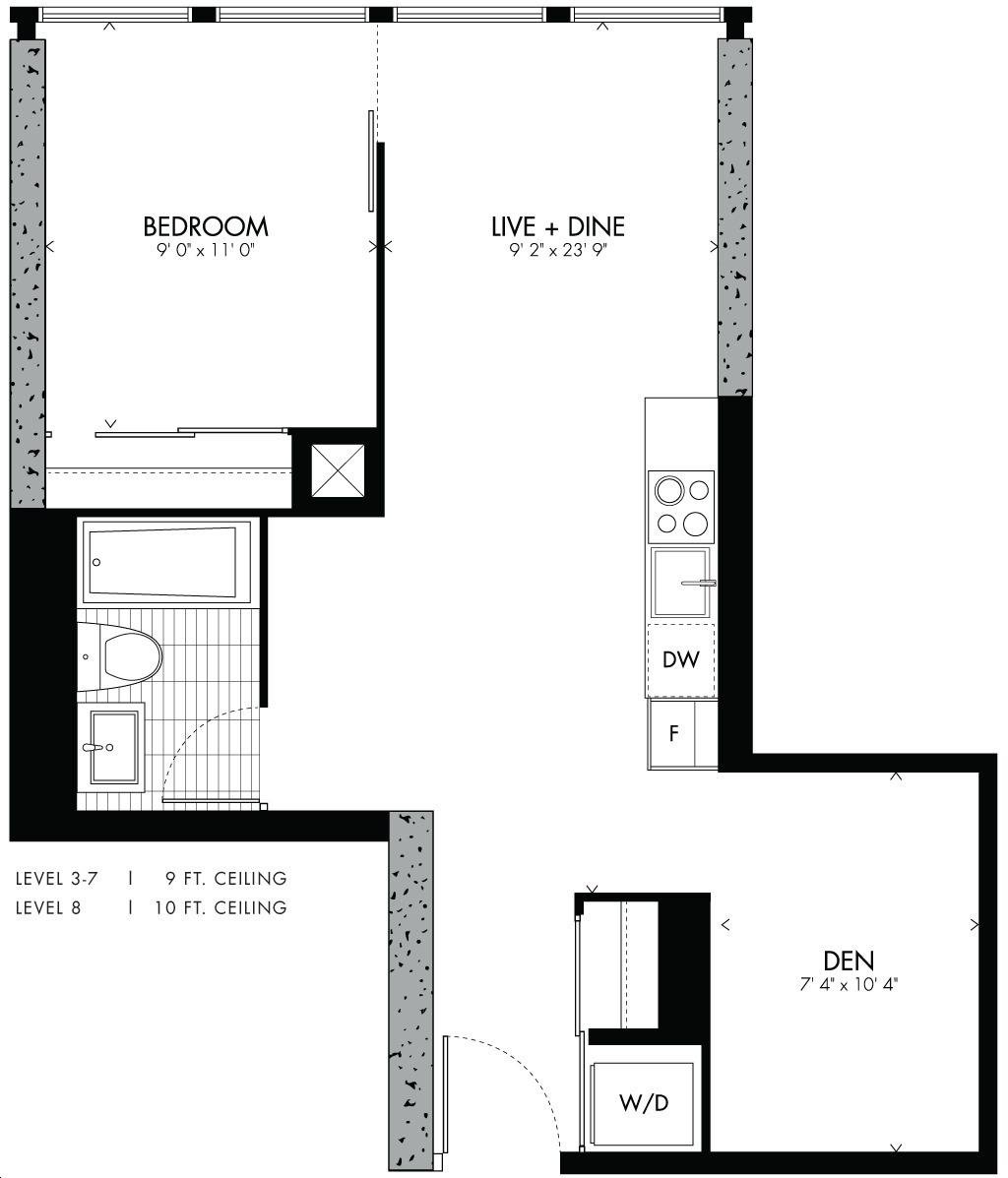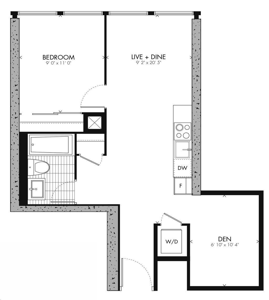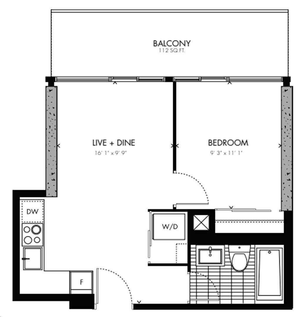 Bauhaus Condos is a collaboration between Lamb Development Corp and Fortress Real, featuring a stunning glass exterior designed by Architects Alliance. The tower will rise 30 storeys high, offering 205 residential units with floor plans ranging from 400 to 1000 sq. ft., catering to a variety of lifestyles.