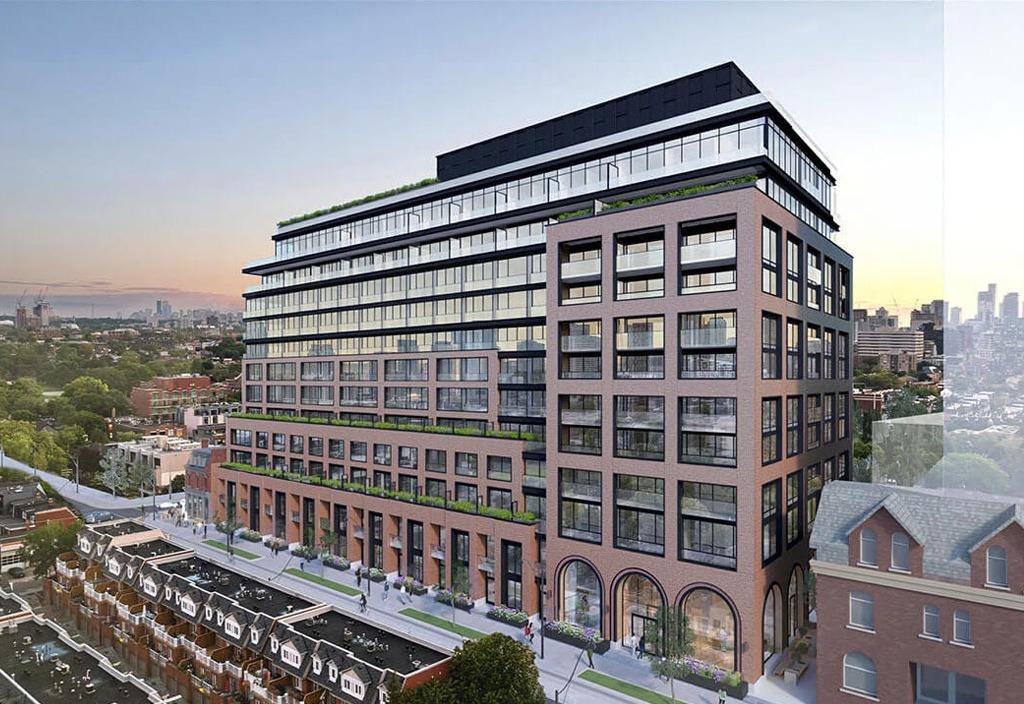 This mid-rise condominium at 111 Strachan Ave stands 13 storeys tall, boasting over 300 units ranging from studios to three-bedroom residences. With its blend of retail space and townhome units, Bellwoods House presents an enticing investment prospect.