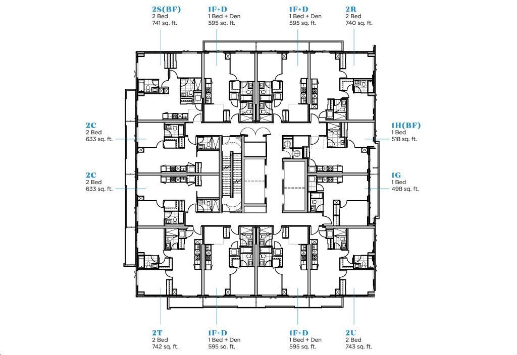 At street level, residents are greeted by convenient retail options encircling the towers. A meticulously crafted pedestrian zone adorned with lush landscaping and cozy seating invites relaxation. The contemporary exteriors of the towers feature an eye-catching block design, serving as a distinctive landmark on the Mississauga skyline.