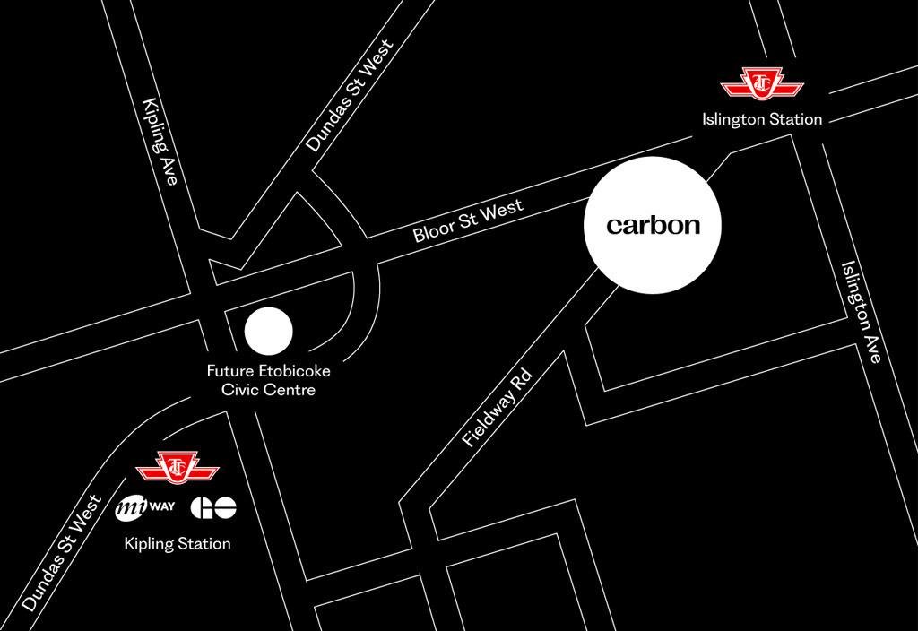 Carbon Condos offers unparalleled access to downtown Toronto and the Greater Toronto Area (GTA). The property is perfectly situated with convenient connections to major highways and public transit. Just steps away from Islington Station and Kipling Station, as well as the upcoming Etobicoke Civic Centre, residents enjoy seamless connectivity to all corners of the city.