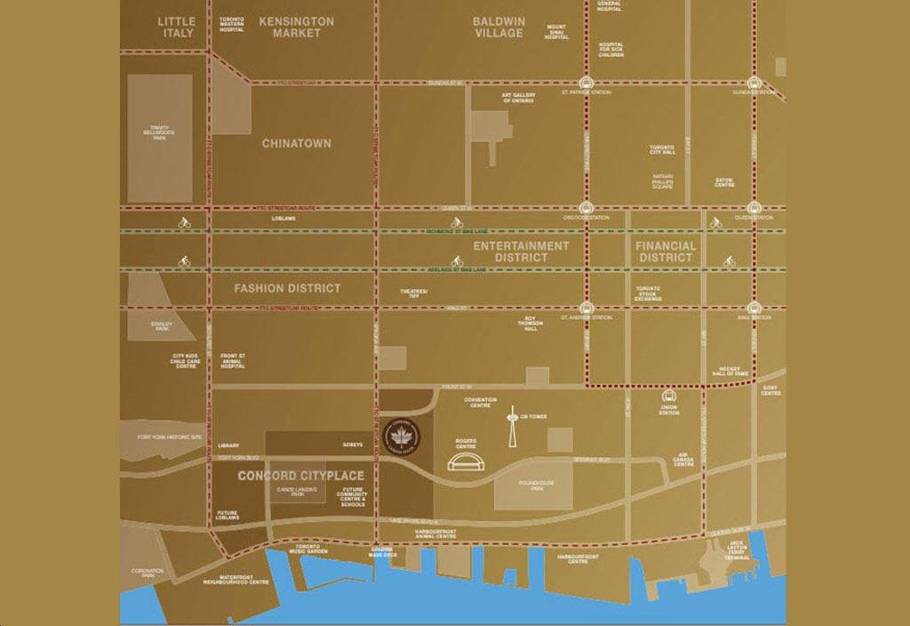 Situated at the corner of **Spadina Ave.** and **Blue Jays Way**, **Concord Canada House** offers a **perfect transit score** and a **walk score of 96/100**. This prime location ensures that everything you need is within walking distance. Residents are also just minutes from **Union Station**, making commuting easy with access to the **TTC subway** and **GO Transit** services.