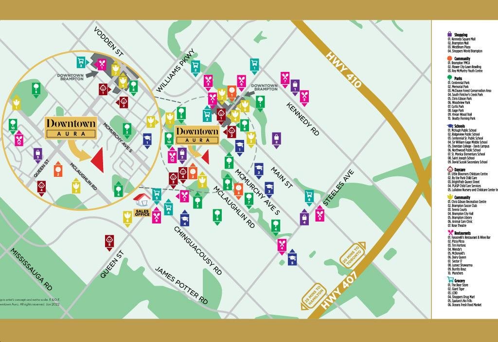 Brampton is a highly connected city, and Downtown Aura offers convenient access to a variety of transit options, including Brampton Transit, Zum, and GO Transit routes, all within walking distance. Commuting is simple, with easy access to Highways 410 and 407, ensuring seamless travel throughout the Greater Toronto Area (GTA). Downtown Toronto is approximately a one-hour drive away, providing the perfect balance of city living and suburban tranquility.