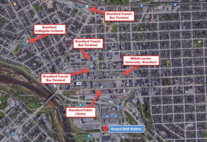 Located in southwestern Ontario, Brantford offers unparalleled convenience. Just an hour away from Toronto, 40 minutes from Waterloo, and 30 minutes from Hamilton, residents of Grand Bell Suites 3 will have easy access to major urban centers. Highway 403 is just minutes away, and Highway 401 is also conveniently located nearby. For those relying on public transportation, VIA Rail and GO Transit bus services provide quick connections throughout the region, making commuting effortless.