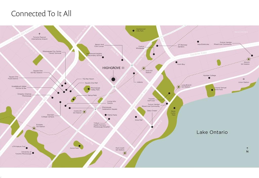Conveniently located at the intersection of *Cawthra Road* and *Dundas Street*, *Highgrove II* offers quick access to *downtown Mississauga*, *Lake Ontario*, and major transportation routes, making it the ideal location for both work and leisure.