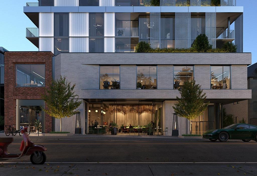 This exceptional development consists of 27 residences, each crafted with care and attention to detail. These well-designed units offer functional layouts and modern living spaces that cater to the needs of today’s urban residents. Positioned in the intimate *Summerhill* neighborhood, One Roxborough West is a place where residents can enjoy the best of city living, while maintaining a sense of privacy and tranquility. The building’s modern facade faces *Yonge Street*, while the opposite side embraces the lush greenery and peaceful nature of the surrounding area. The ground floor features charming narrow storefronts within a two-story red brick base, blending seamlessly with the area's boutique shops, restaurants, and cafes. Professional offices located on the second floor add to the dynamic atmosphere of this prime location, elevating the residents above the bustling high street below.