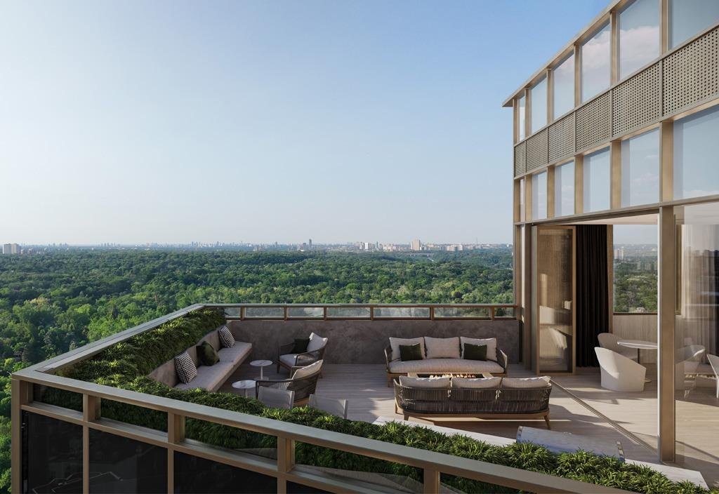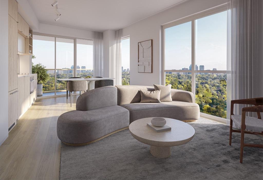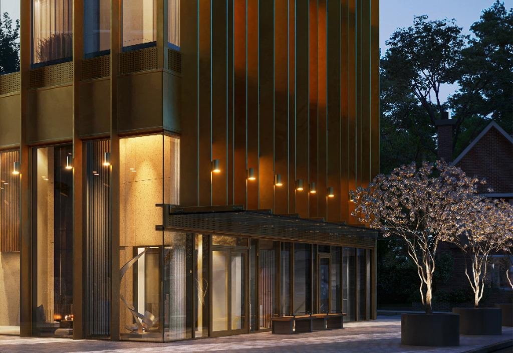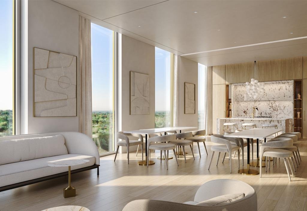 The Park Road Condos building is inspired by the iconic Gooderham Building in Toronto, showcasing a distinct flatiron design. Featuring a curved edge along the Church Street side, step-back elements on the east side, and elegant cutbacks at the west end, this architectural marvel will enhance the Yorkville skyline. Vertical architectural fins on the lower portion of the building further contribute to its unique aesthetic appeal.
