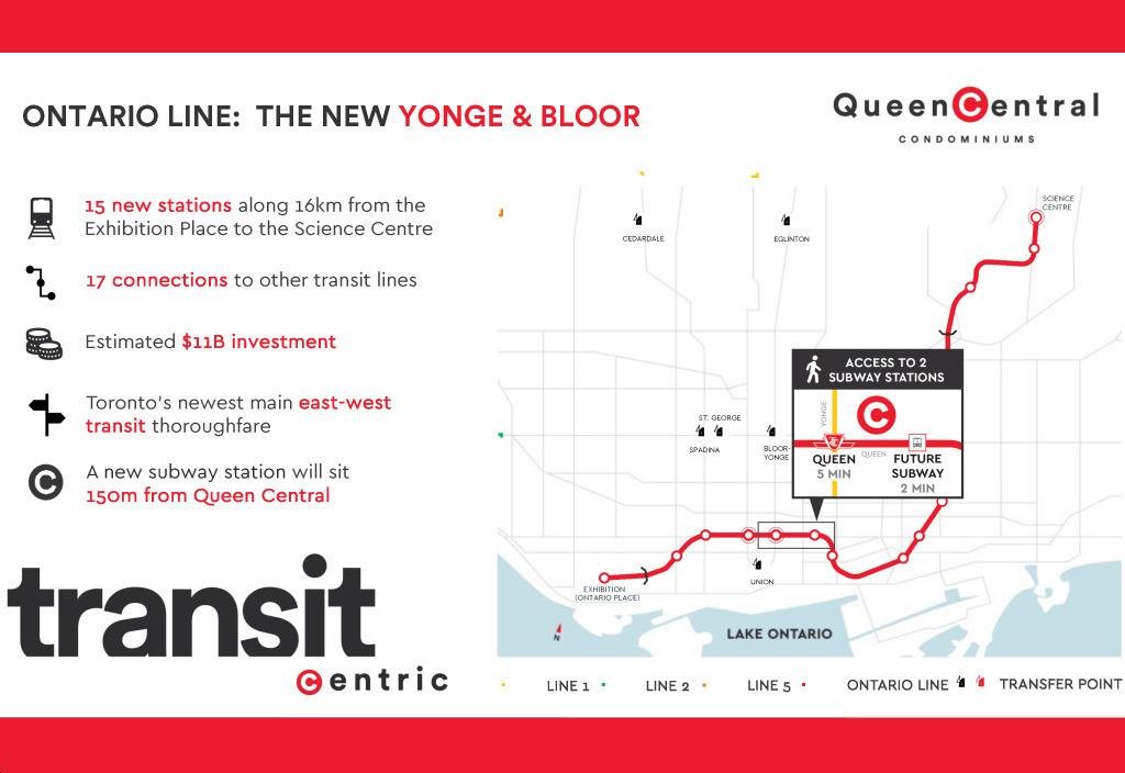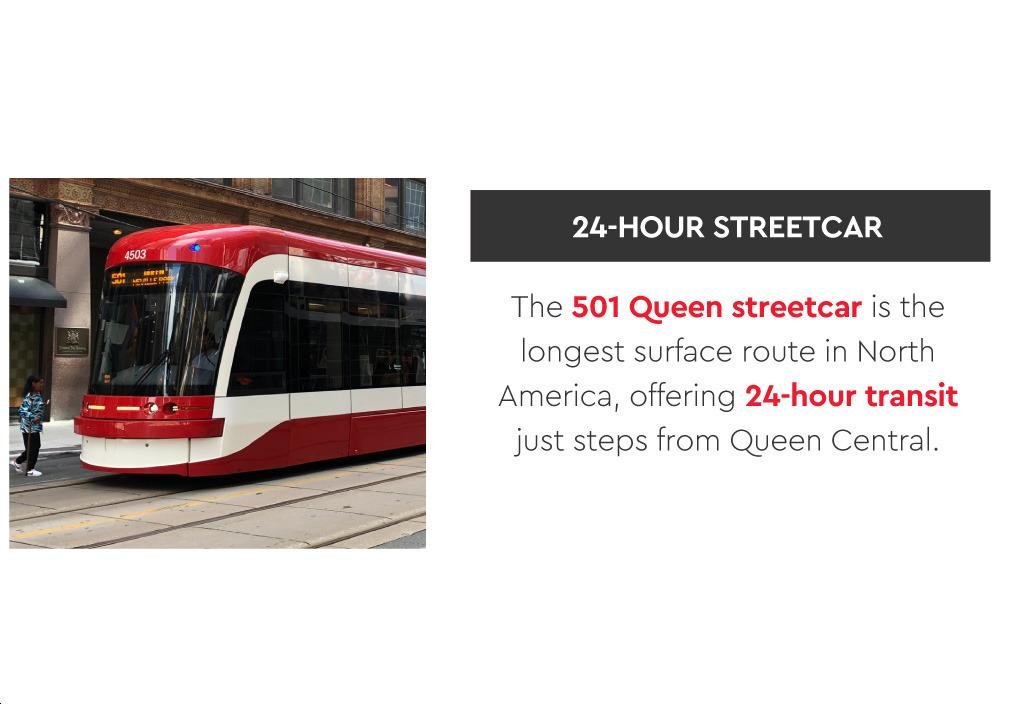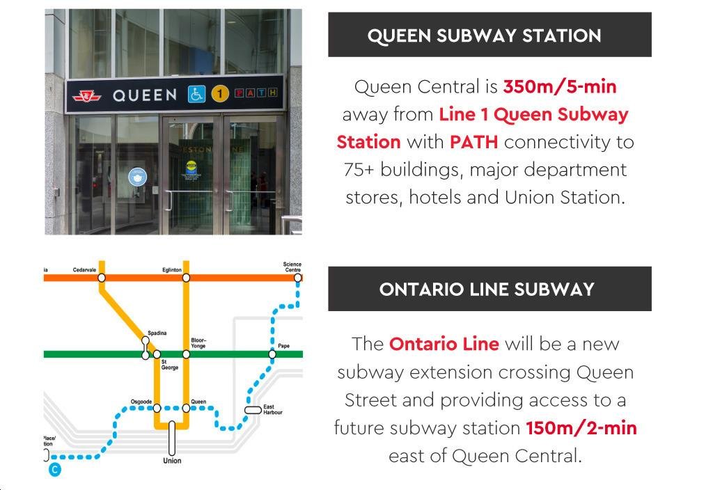 Enjoy seamless connectivity with the city’s extensive transit network. Queen Central Condos boasts a perfect Transit Score, ensuring that residents will always have easy access to public transportation. TTC streetcar and bus routes are right at your doorstep, and the subway station is just a short walk away. In addition, the proposed Ontario Line will help alleviate congestion on existing routes, providing faster, more efficient travel options. Residents will also have direct access to Toronto’s PATH network, a 30-kilometer underground walkway featuring shops, restaurants, and services.