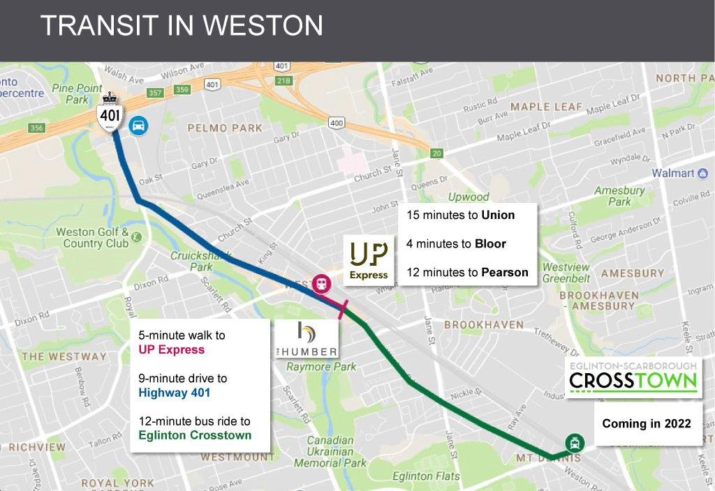 For those who drive, **Highway 401** is easily accessible via the **Weston Rd. onramp**, located just minutes from the **Weston Rd. and Lawrence Ave. West** intersection.
