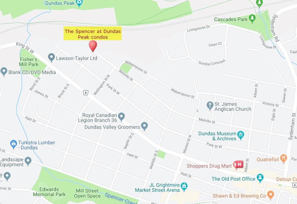 The Spencer at Dundas Peak is just a short, scenic walk from Dundas Village, a charming and historic community home to a selection of boutique shops and local eateries.