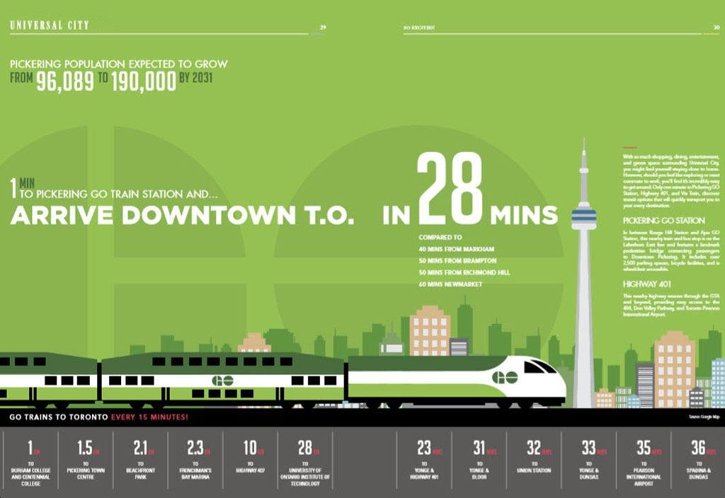 Universal City Condos is conveniently close to prestigious schools, parks, big box stores, and the Pickering Recreation Complex. The Pickering Town Centre, boasting 203 stores, is a mere 3-minute drive away, offering an array of shopping options.